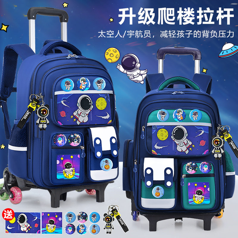 26新款拉杆车书包小学生男孩儿童1-3-6年级大容量拖拉杆箱带轮爬楼太空人男生减负两用可拆卸卡通帅气男童