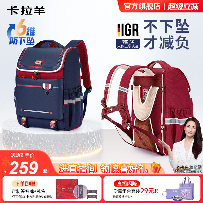 【新品】卡拉羊1-3-6年级小学生书包减负护脊大嘴书包儿童双肩包超轻减负护脊男生书包包女生书包大容量A标