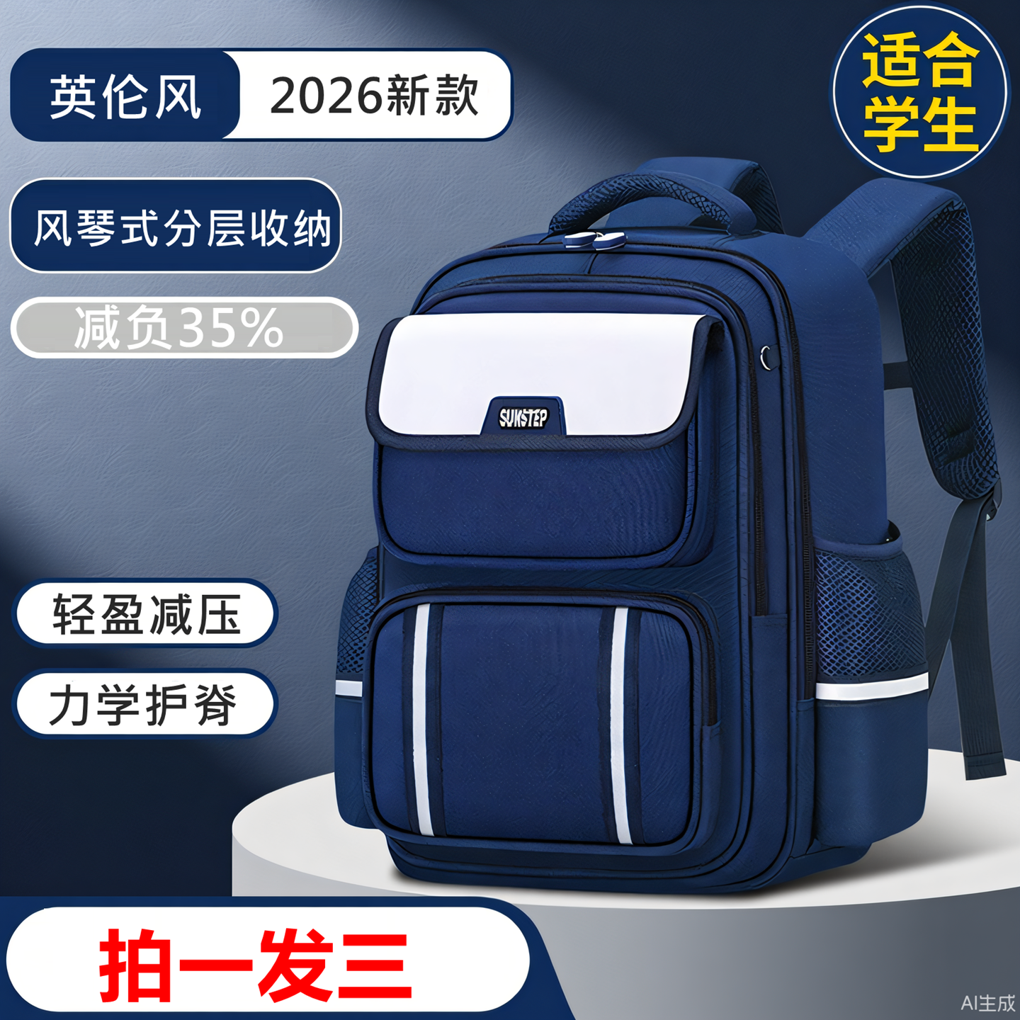 书包男小学生英伦风6S减负男生女生1-3-6年级护脊超轻便男孩女孩