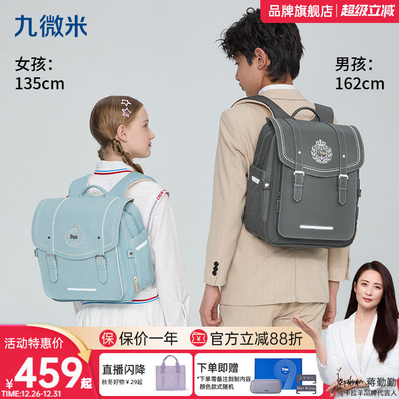 卡拉羊九微米1-3-6年级小学生书包气囊书包减负护脊减震超轻女生双肩包男生大容量背包学院风