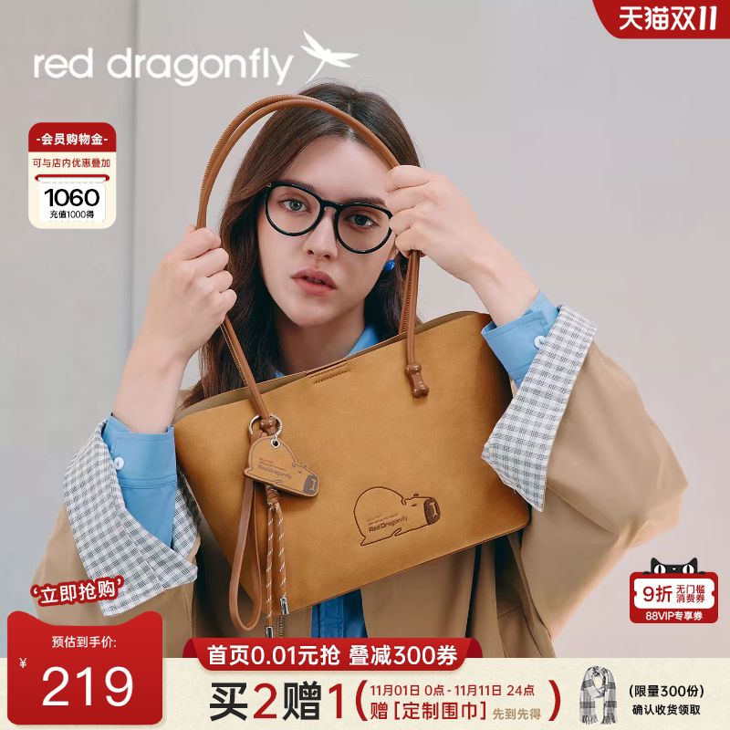 红蜻蜓托特包女2025秋新款卡皮巴拉包包miu系复古绒面通勤手提包