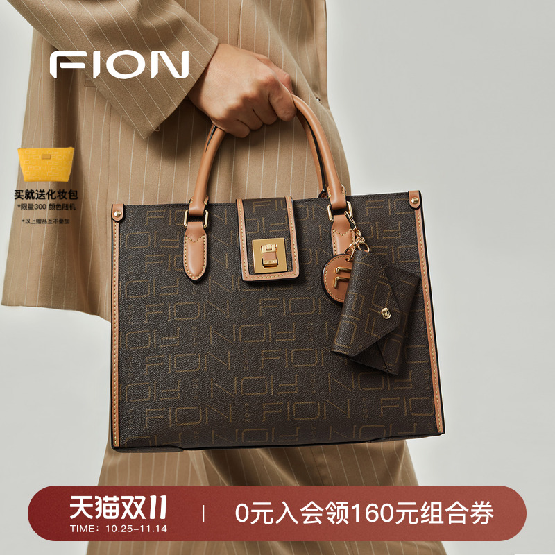 Fion/菲安妮老花托特包新款 大包包轻奢感小众大容量通勤手提包
