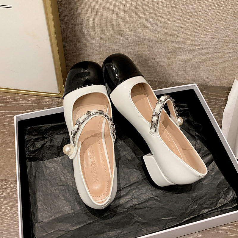 2026春季新款女单鞋珍珠鞋复古女鞋小香风玛丽珍鞋粗跟中跟小皮鞋