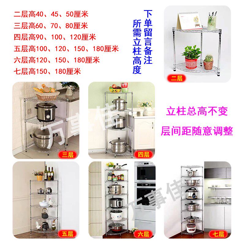 厨房三角架多层可调节锅具置物架家用多功能落地墙角收纳储物架子