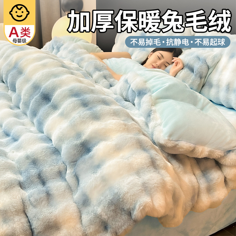 冬季牛奶绒加绒被套单件珊瑚绒宿舍单人兔绒毛绒被罩1.5米四件套3