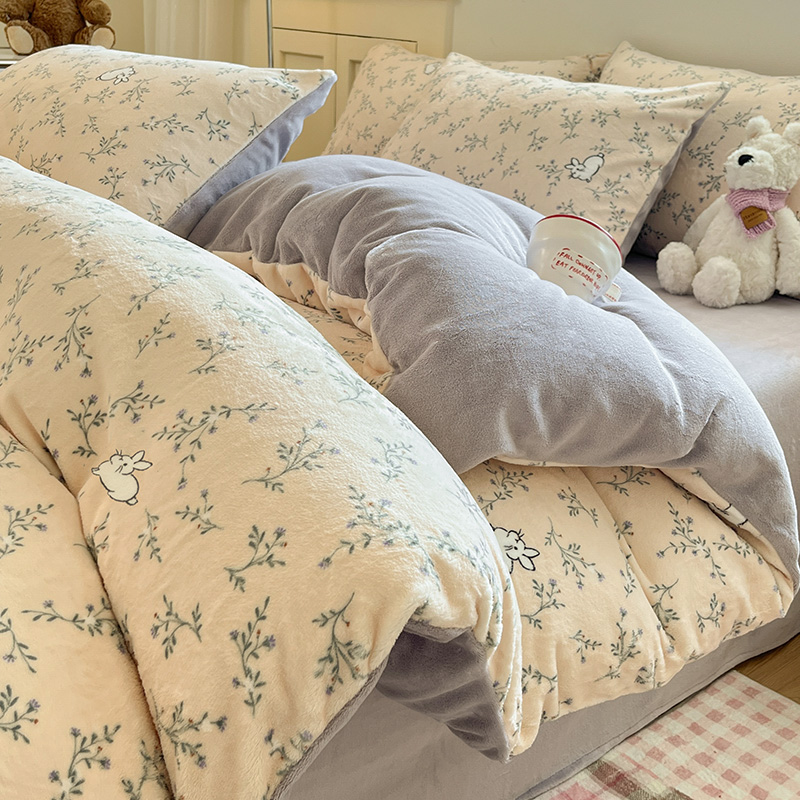 无印良品珊瑚牛奶绒被套加厚加绒单人床上被罩床品秋冬床单奶油风