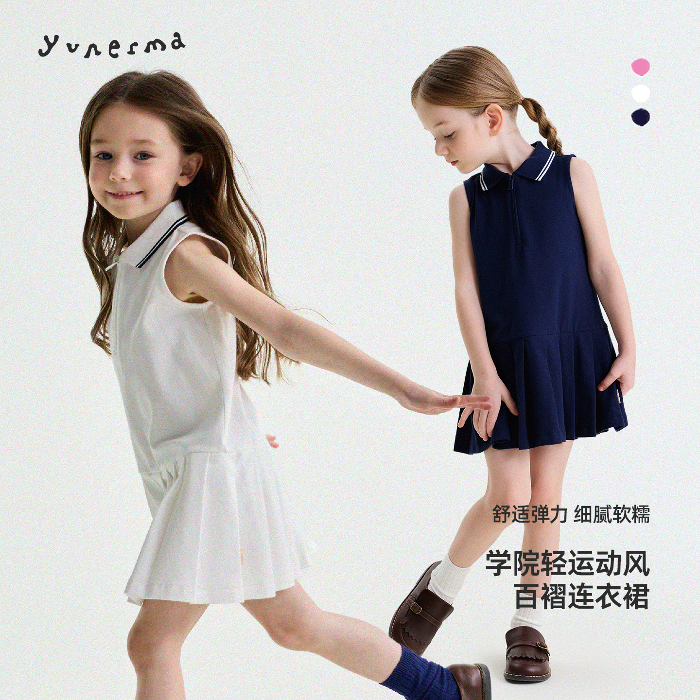允儿妈女童夏季薄款学院风Polo背心裙宝宝洋气百褶连衣裙儿童裙子