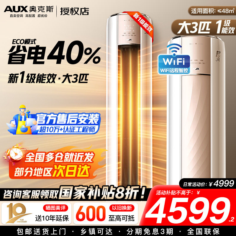 国补20%]AUFIT空调奥克斯出品3匹立式家用一级变频冷暖2P柜机旗舰