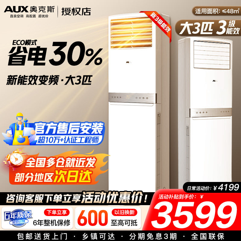 奥克斯空调大3匹新升级能效变频冷暖两用家用立式柜机官方旗舰店