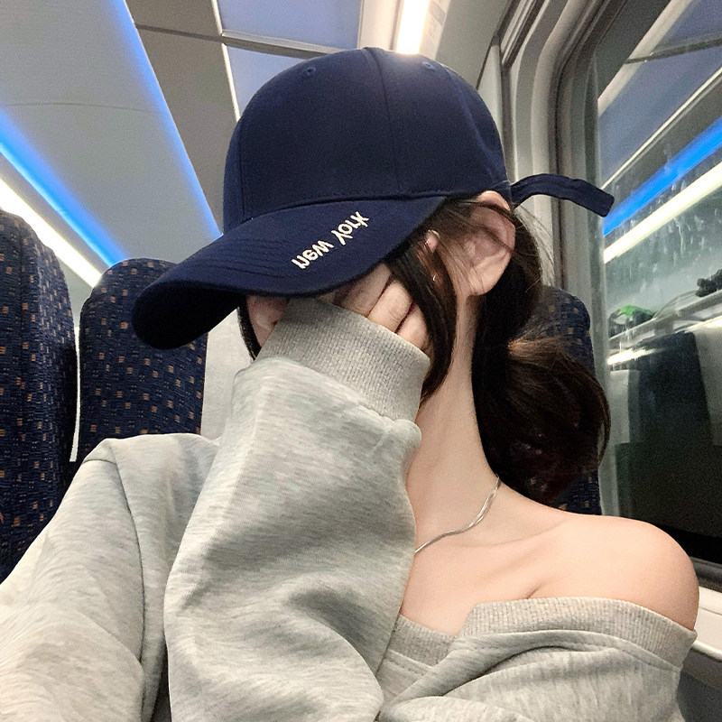 蓝色鸭舌帽子女款显脸小大帽檐韩系超好看大头围棒刺绣硬顶球帽男