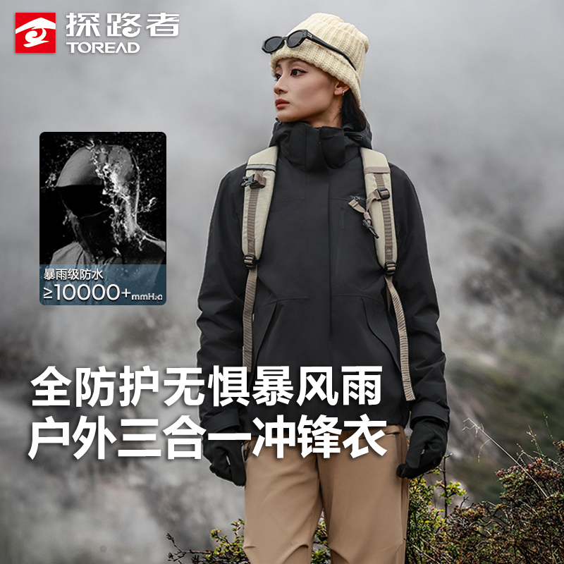 探路者冲锋衣女士2025新款冬季户外徒步登山防水防风三合一外套男