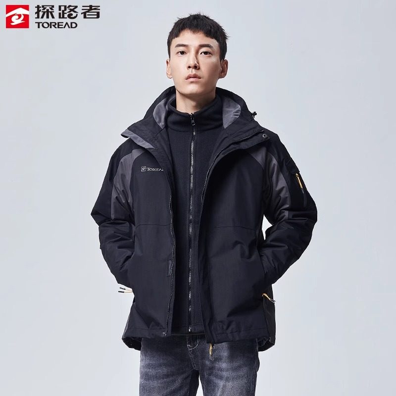 探路者冲锋衣2025年新款三合一男冬季户外运动防风保暖登山服