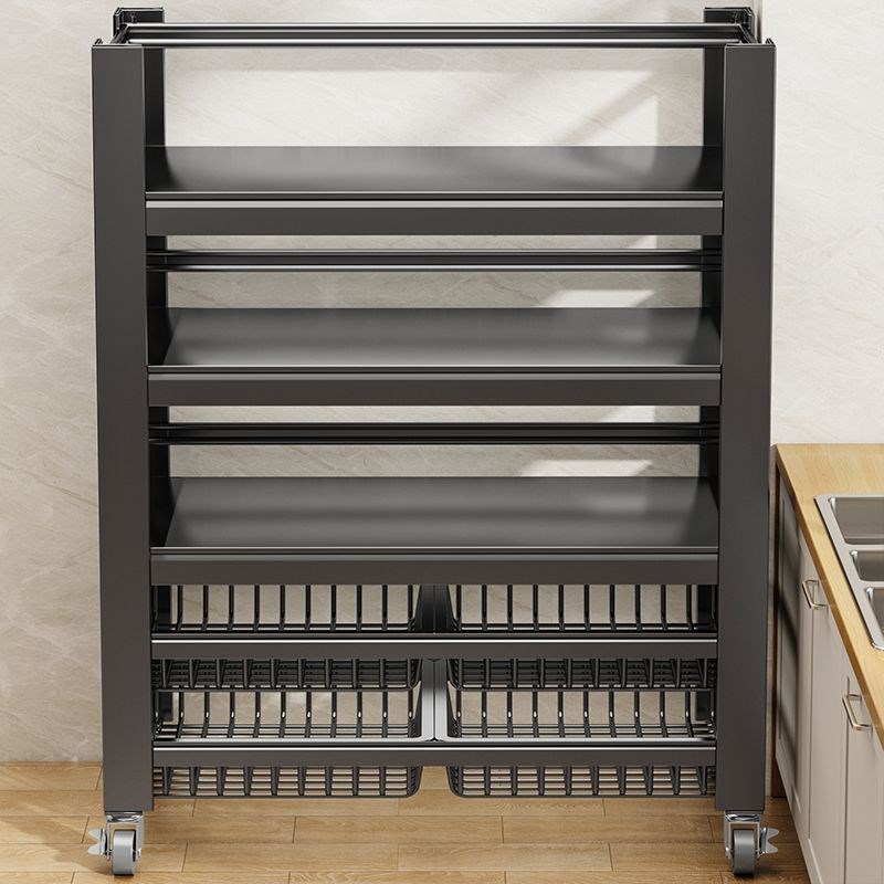 可移动厨房置物架多层带轮收纳架家用落地烤箱微波炉碳钢储物架子