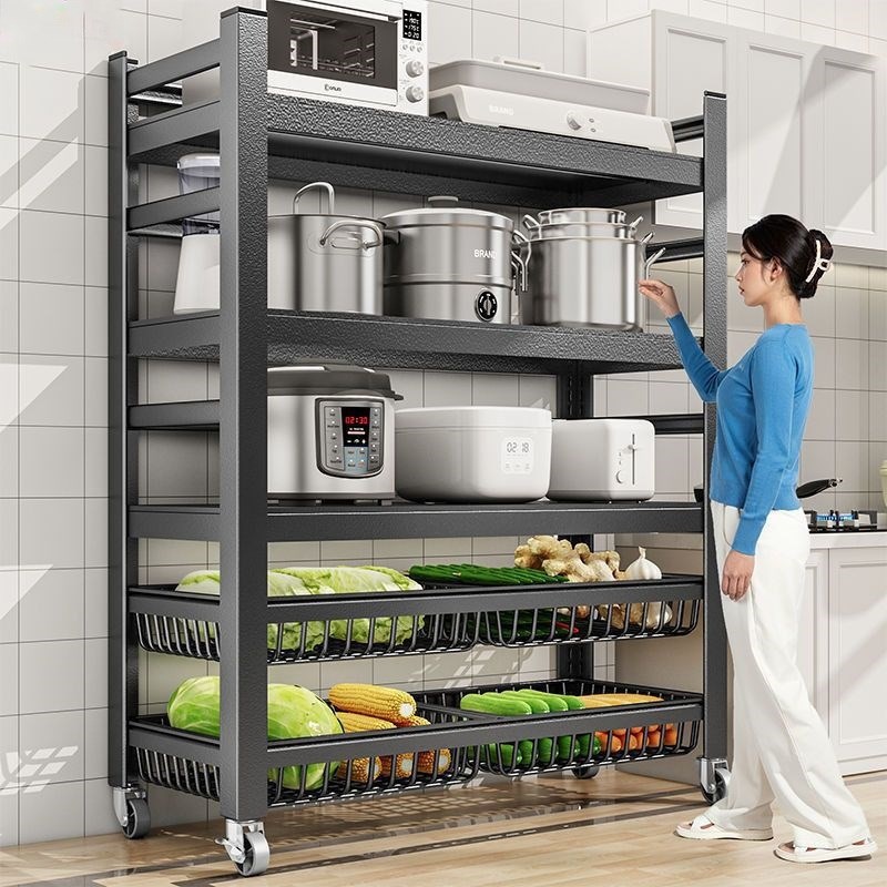 可移动厨房置物架落地多层家用果蔬菜架子收纳筐345层储物架锅架