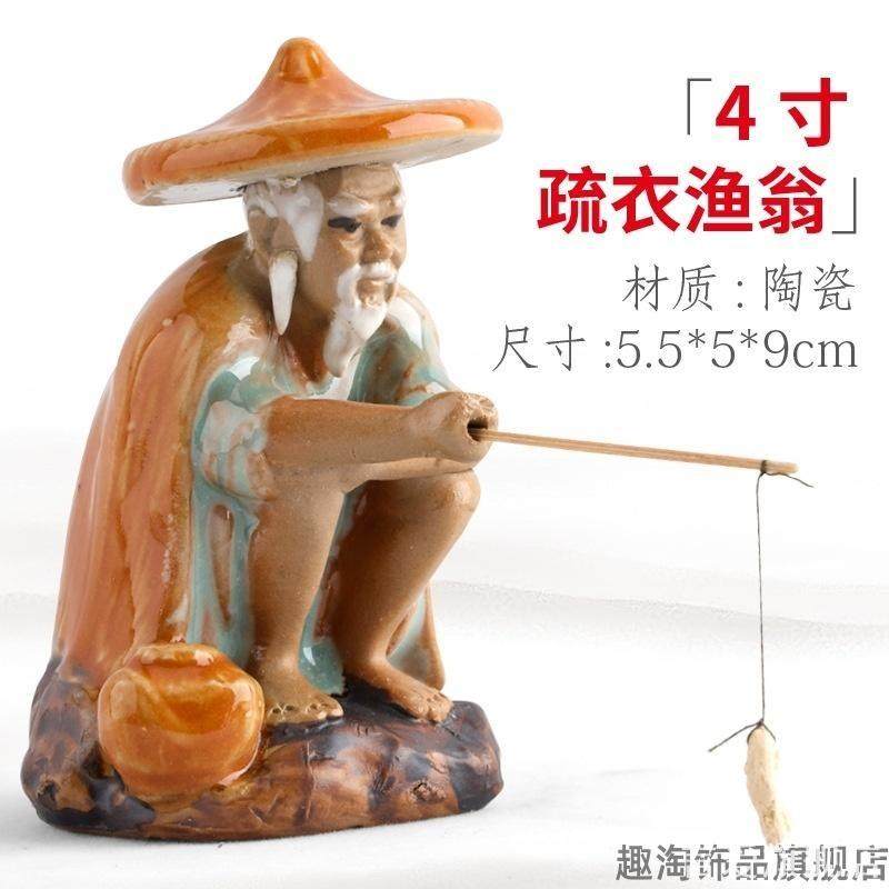 高21姜太公悠闲垂钓优雅陶瓷摆件别墅假山石山大型鱼池盆景配件