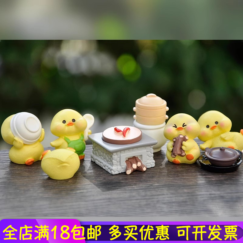 微景观小摆件卡通可爱厨房做饭小黄鸭盲盒手办diy装饰品盆景配件