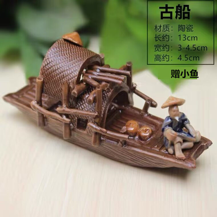 盆景配件人物小摆件 假山装饰配件鱼缸配件 陶瓷 船古船渔船行舟