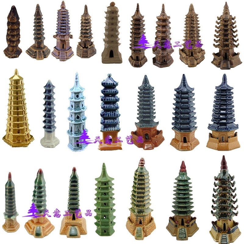 陶瓷摆件宝塔假山盆景配件模型六角塔古塔多肉微景观造景室内配饰
