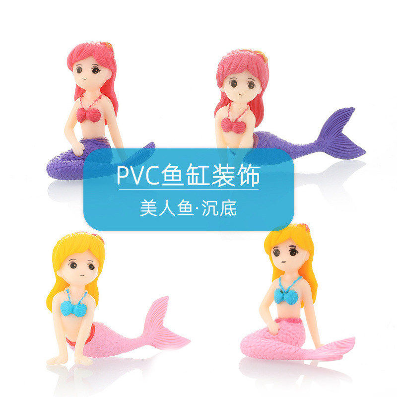 观赏桌面小鱼缸摆件水族箱装饰工艺品PVC美人鱼景观盆景配件人物