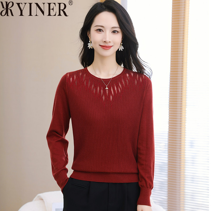 影音儿女装清仓折扣25春款羊毛针织衫毛衣烫钻蕾丝心机显瘦打底衫