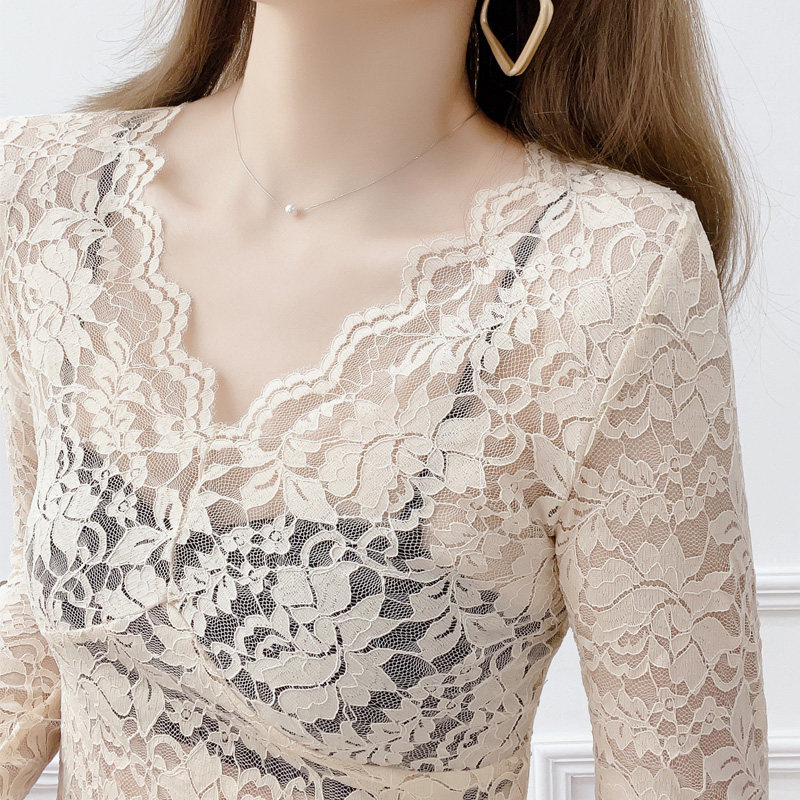 2025秋季新款V领蕾丝打底衫女修身内搭长袖洋气春款性感内衬上衣