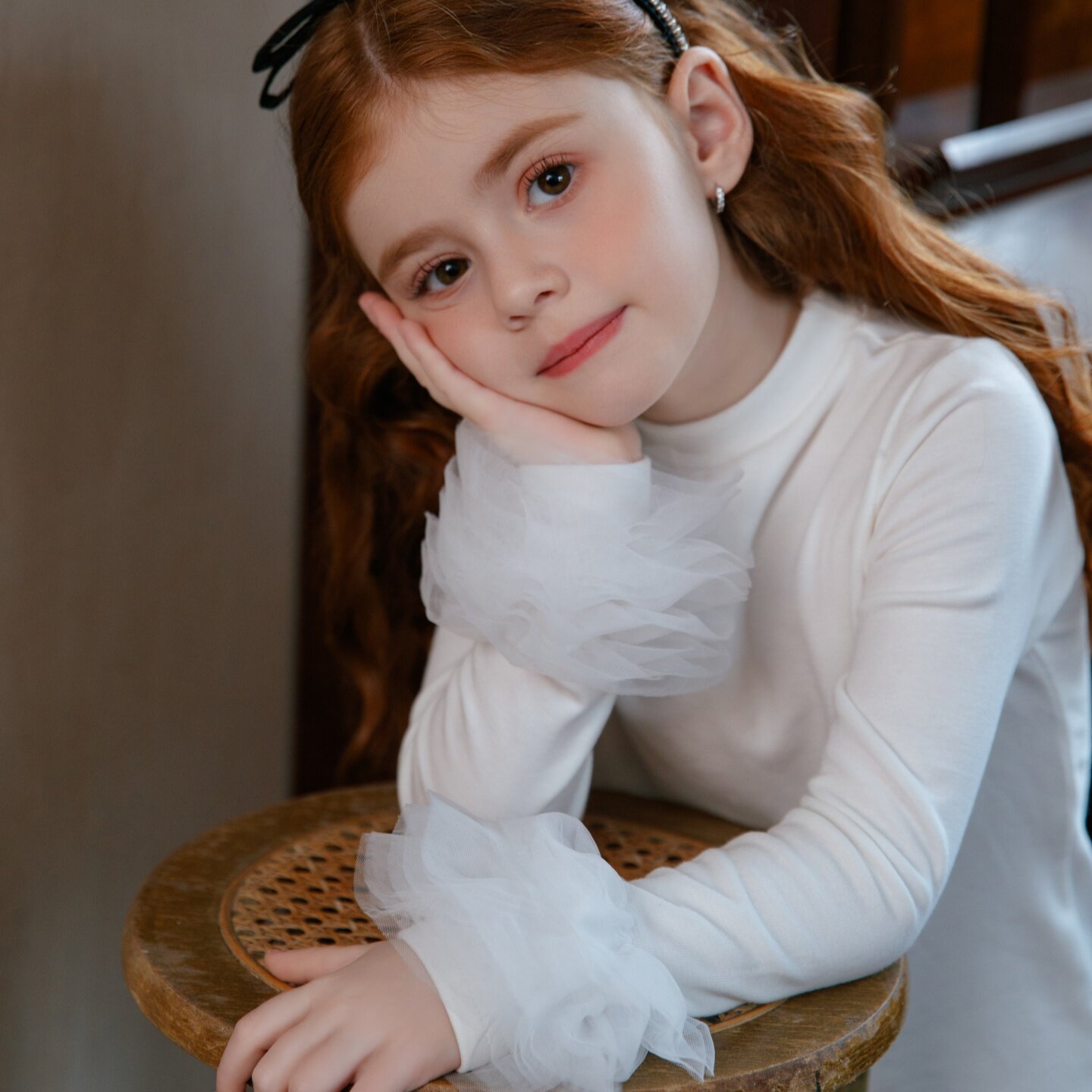 女童2026春款白色蕾丝花边长袖内搭打底衫蝴蝶结绑带设计阔腿卫裤