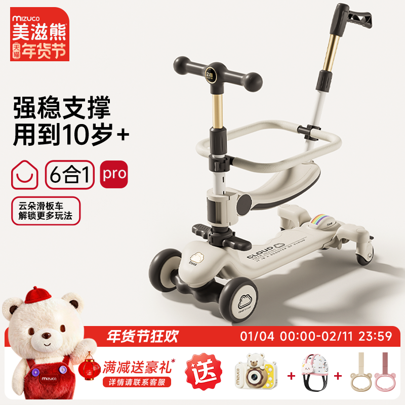 贝易儿童滑板车1到3岁6岁七合一可坐可骑婴儿宝宝学步车溜娃神器