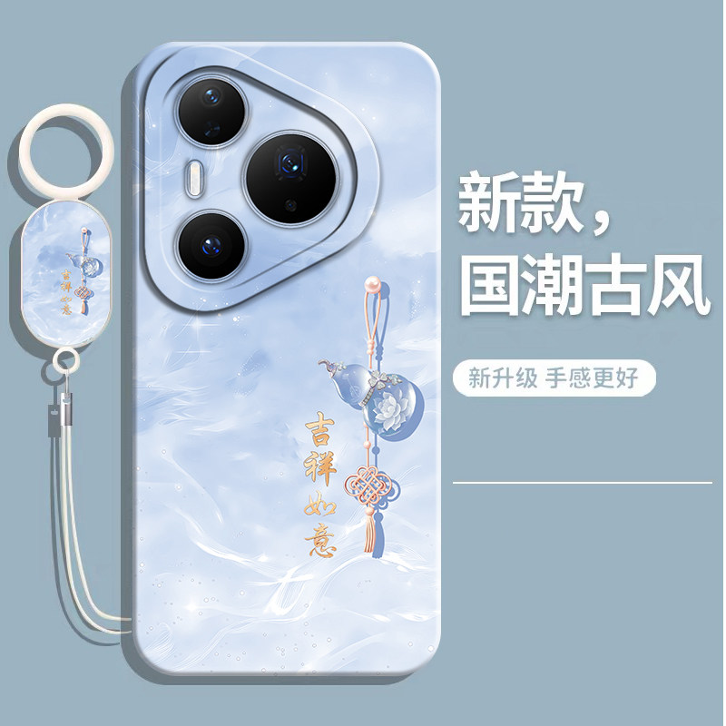 适用华为Pura80手机壳pura80pro+新款女好运常在p80ultra背带斜跨腕带挂绳小羊皮保护套P8O软壳p80por后外壳