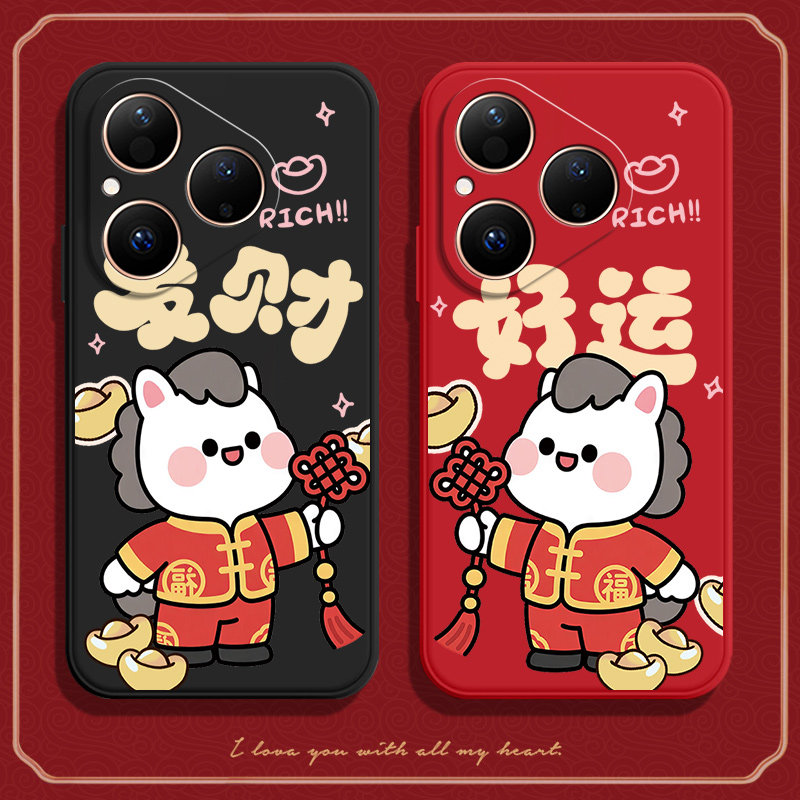 适用华为Pura80手机壳pura80pro+新款女p80ultra红色顺遂带挂绳小羊皮新年保护套P8O硅胶软壳p80por防摔外壳