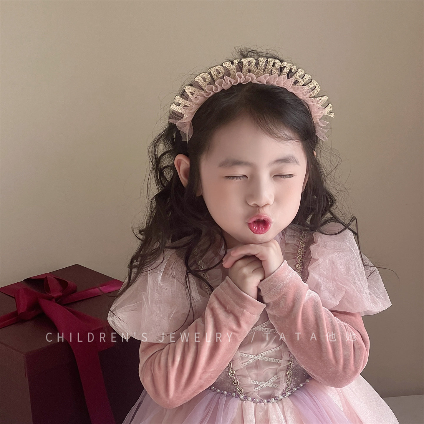 生日头饰帽子女儿童头纱皇冠发箍公主宝宝周岁生日宴场景装饰发卡