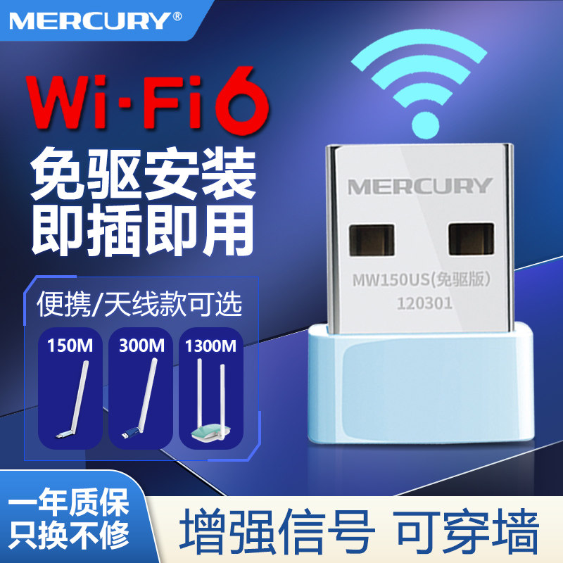 顺丰可选】水星免驱usb无线网卡台式机电脑主机笔记本天线发射随身wifi6接收器以太网千兆路由器家用网络信号
