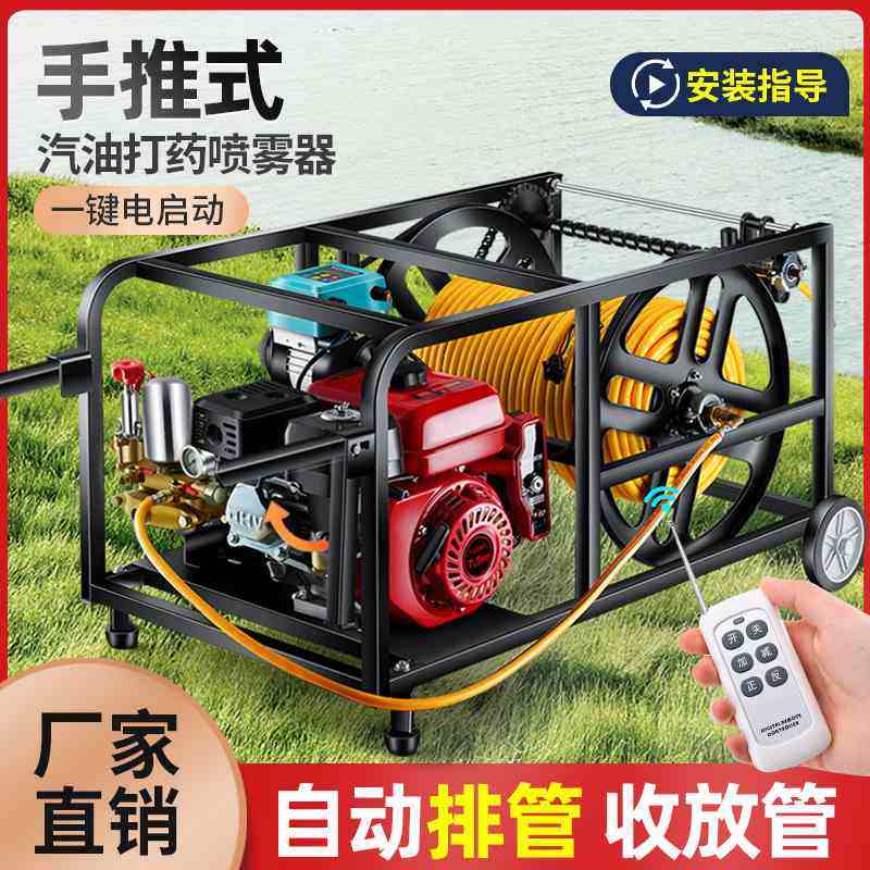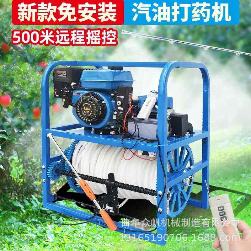 汽油电动打药机全自动高压农用山区丘陵遥控自动卷管打农药喷雾器
