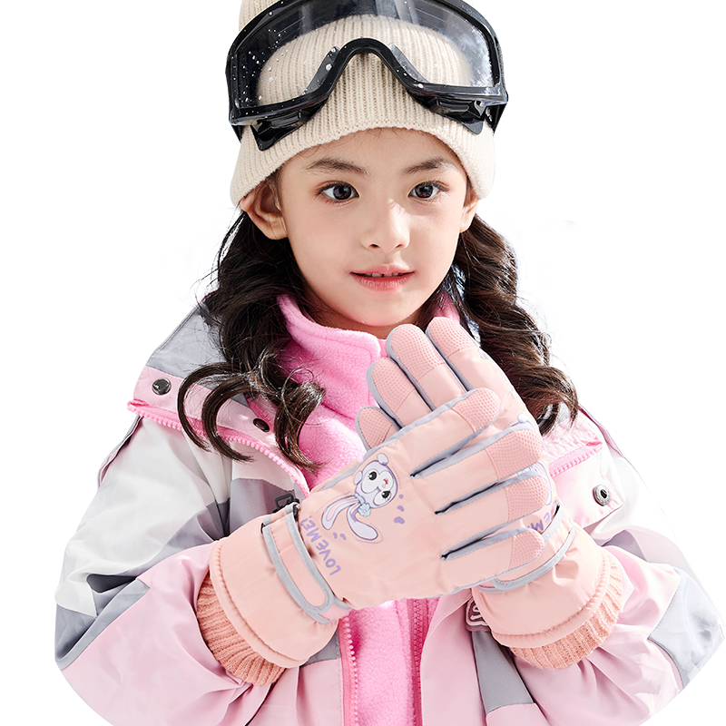 牧萌儿童手套冬加绒加厚中大童学生玩雪骑行女孩防水防风滑雪手套