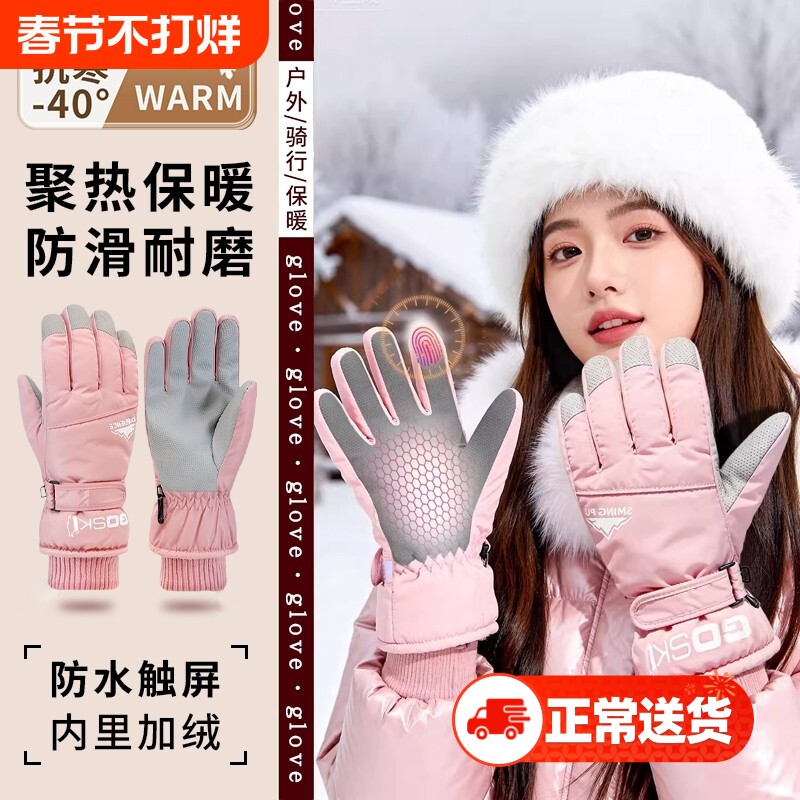 滑雪手套女冬季防寒保暖加绒可触屏防泼水加厚棉防风骑车户外玩雪