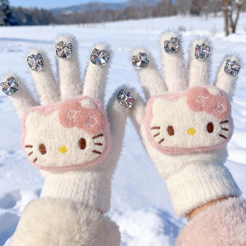 HelloKitty滑雪手套女士冬季可爱加绒加厚骑行保暖防寒风女生手套