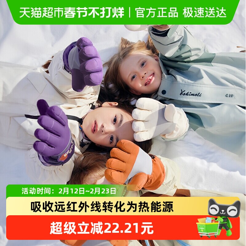 KK树儿童滑雪手套防水防风男女童冬季加绒加厚自发热保暖五指防滑