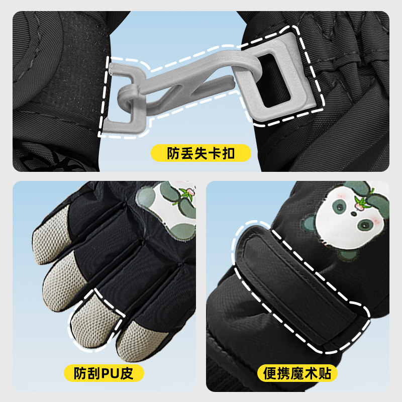 库洛米儿童滑雪手套冬加绒保暖玉桂狗中大童男女小孩冬天玩雪防寒