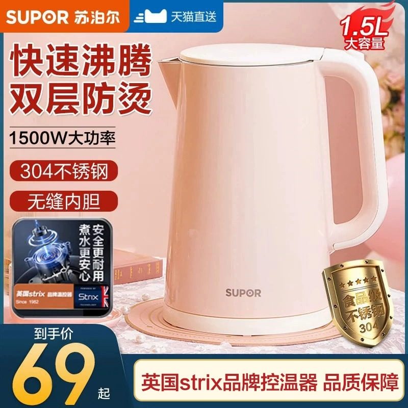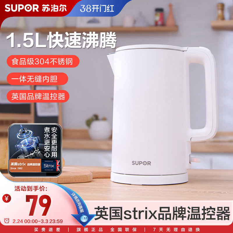 苏泊尔电热水壶家用烧水壶自动断电泡茶煮水304不锈钢保温开水壶