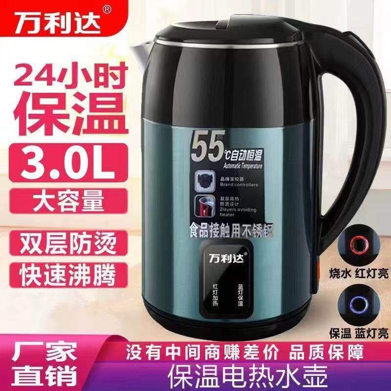 万利达3.0L自动保温电热水壶自动断电家用烧水壶双层彩钢电水壶