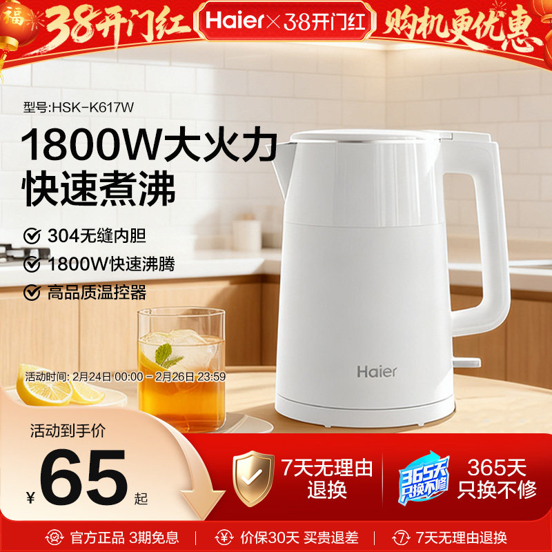 海尔电热水壶家用自动断电保温304不锈钢电水壶保温大容量烧水壶