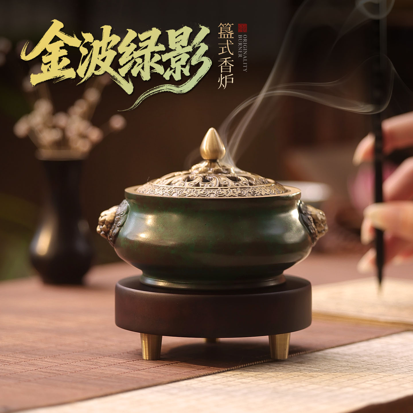 大漆纯铜香炉家用室内熏香盘香炉非遗檀香沉香炉高端香薰炉宣德炉