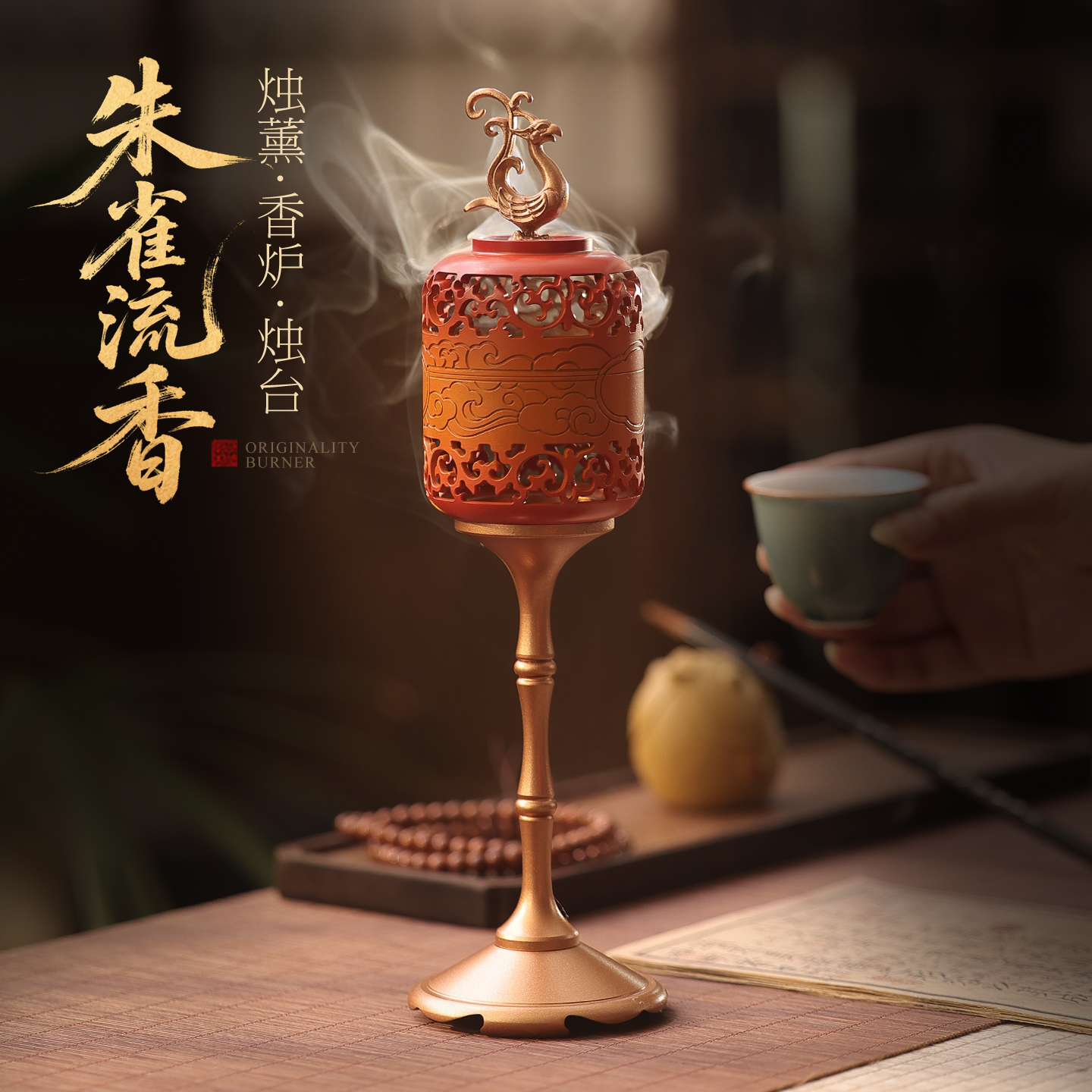 朱雀纯铜香炉家用室内烛台檀香沉香盘香炉创意茶道摆件中式香薰炉