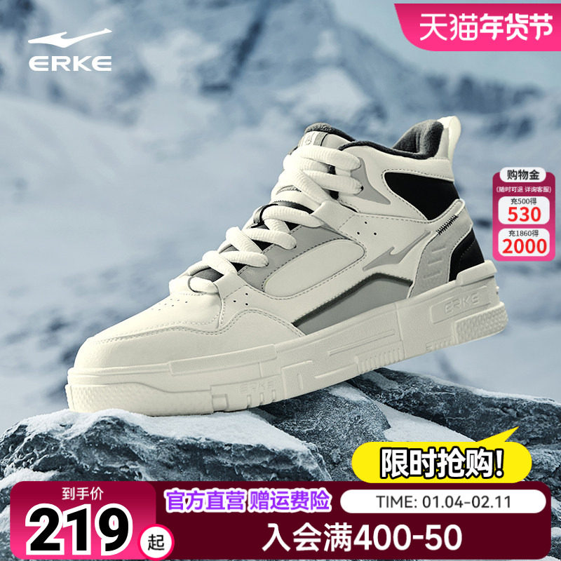 鸿星尔克高帮板鞋男士鞋子棉鞋秋季新款厚底潮保暖休闲男鞋运动鞋