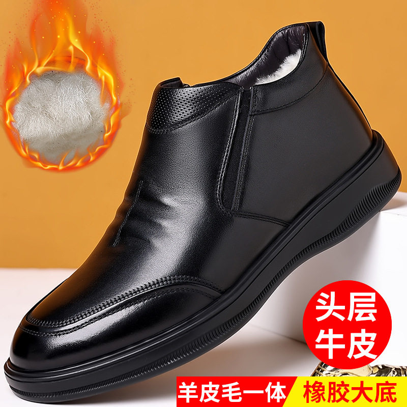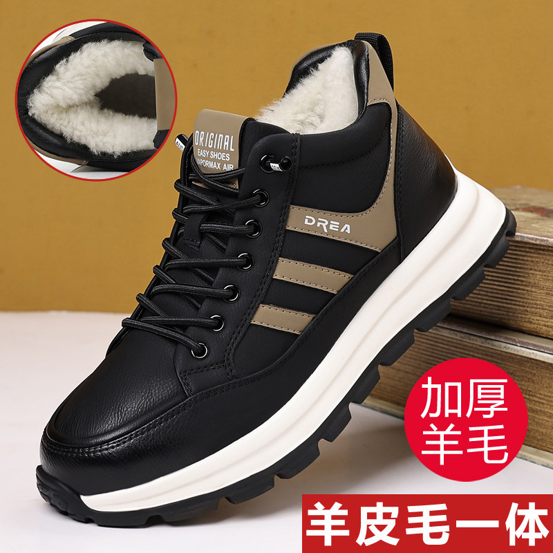 羊毛鞋男高帮皮鞋冬季加绒保暖休闲男鞋真皮冬天爸爸东北大棉鞋男