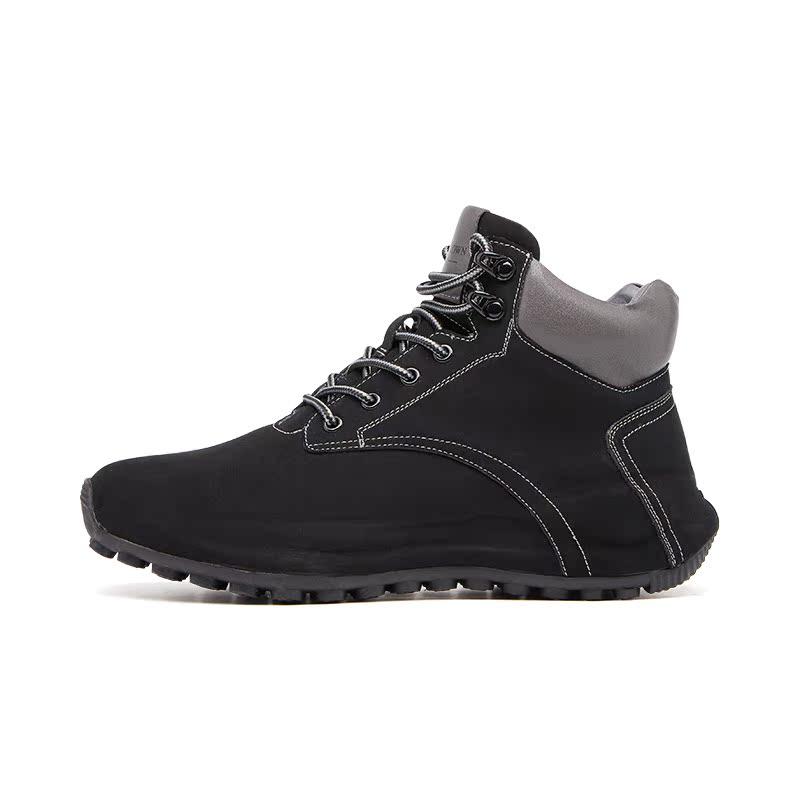 秋冬季加绒保暖休闲男鞋防滑耐磨运动鞋黑色时尚潮鞋皮面户外鞋子