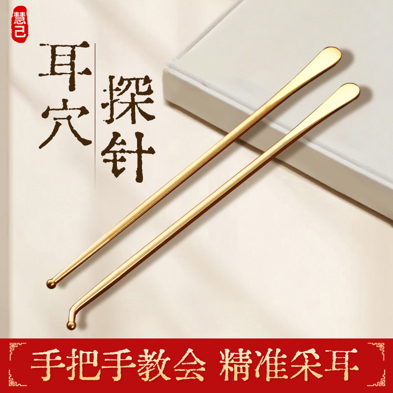 慧己纯黄铜耳穴笔耳部理疗探穴笔经络按摩针点探棒反射区黄铜探针