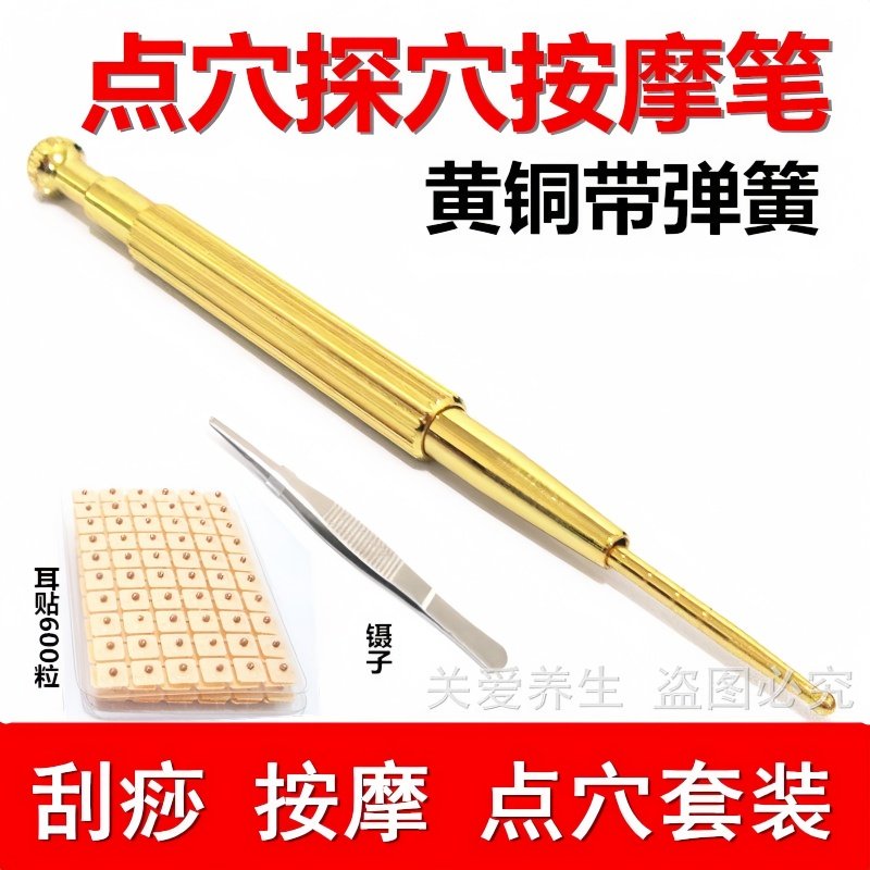 黄铜弹簧耳穴探穴位笔不锈钢经络按摩针点穴笔耳部理疗贴刺络探棒