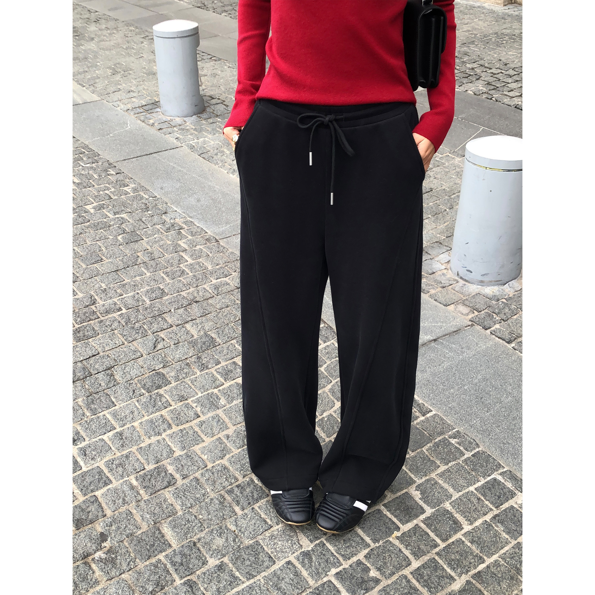 LINY LIBERTY 25AW 慵懒风纯色直筒宽松阔腿裤女休闲针织抽绳长裤
