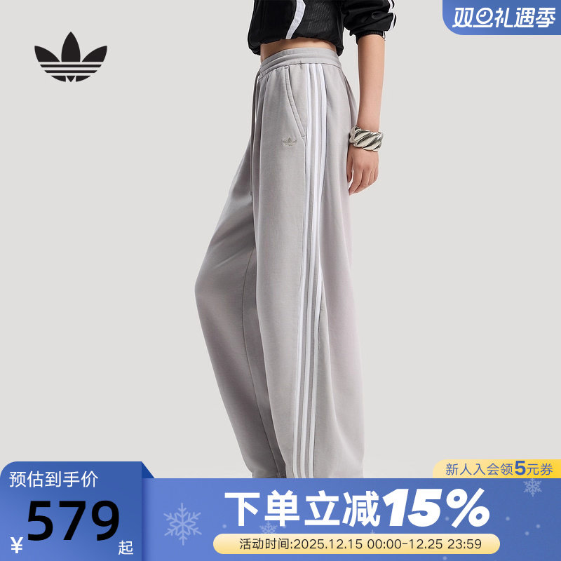 adidas阿迪达斯三叶草弯刀裤女休闲居家三条纹毛圈布长裤 IA7519