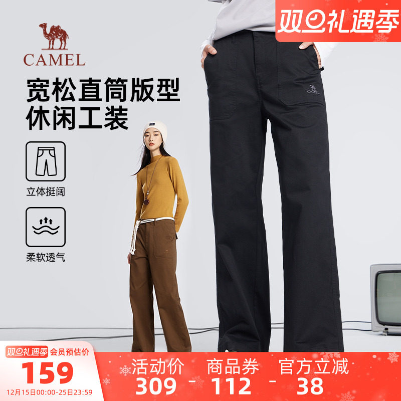 骆驼运动工装裤女休闲运动长裤子2025春秋季户外运动裤宽松阔腿裤
